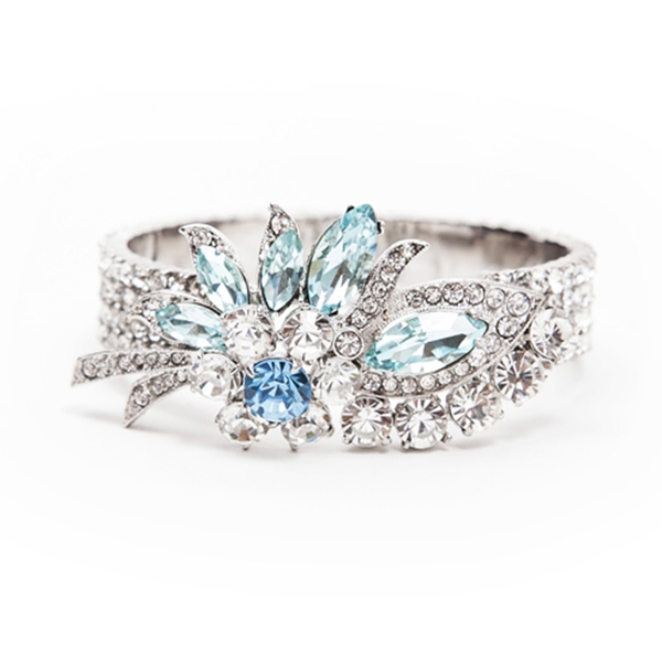 This vintage inspired cuff bracelet adds the perfect amount sparkle with aquamarine and blue topaz crystals. Perfect for any occasion. This cuff was styled after pieces from designer, Paige Jansen-Nichols personal antique collection. Bracelet fits 7 inch wrist. 50% of sales will be donated back to Stand Up 2 Cancer! #jewelryforacause #findacure