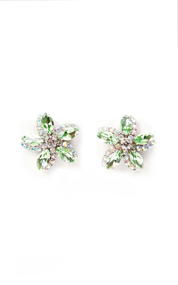 Our SV Couture earrings feature peridot and clear crystal in a pretty floral design. These earrings are the perfect way to bring spring into any season. Post earrings for pierced ears. 50% of sales will be donated to Stand Up 2 Cancer.