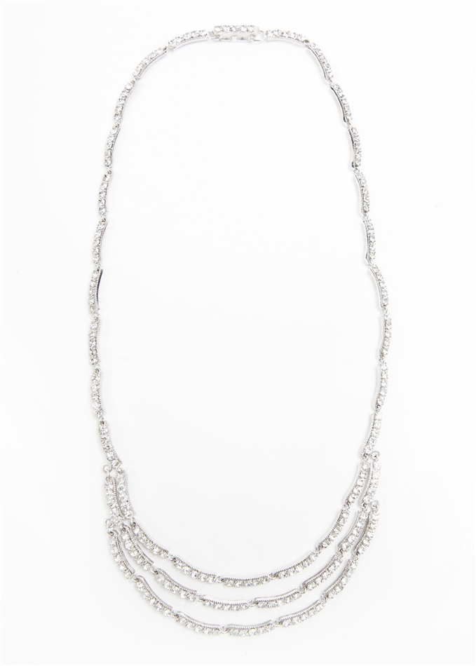 SV Couture Triple Strand Necklace in Clear Crystal and Rhodium. 20"